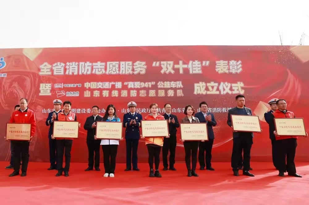 山东省消防志愿服务“双十佳”表彰暨省级消防志愿服务队成立仪式由山东省消防总队、山东省精神文明建设委员会办公室、山东省民政厅、共青团山东省委联合举办,表彰10名在全省消防志愿服务工作中表现突出的集体和个人,今年会从全省890支消防志愿服务队中脱颖而出,获得“十佳消防志愿服务组织”荣誉称号。