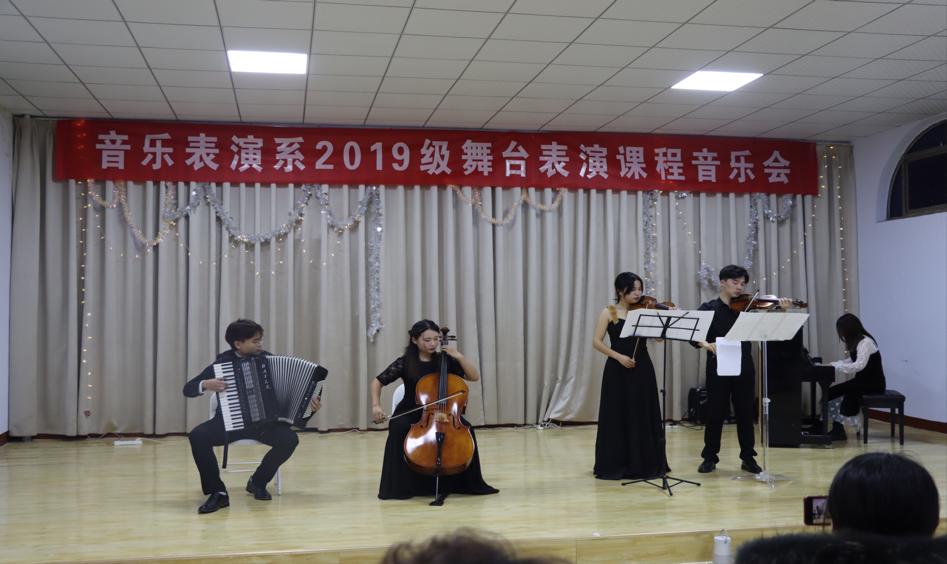 12月22日晚,音乐表演系2019级舞台表演课程音乐会在音乐学院排练厅成功举办。此次音乐会共有合唱、独唱、器乐重奏、声乐器乐合奏等多种形式25个节目,由任课教师李琛和音乐表演专业2019级全体学生共同完成节目创编与表演实践。
