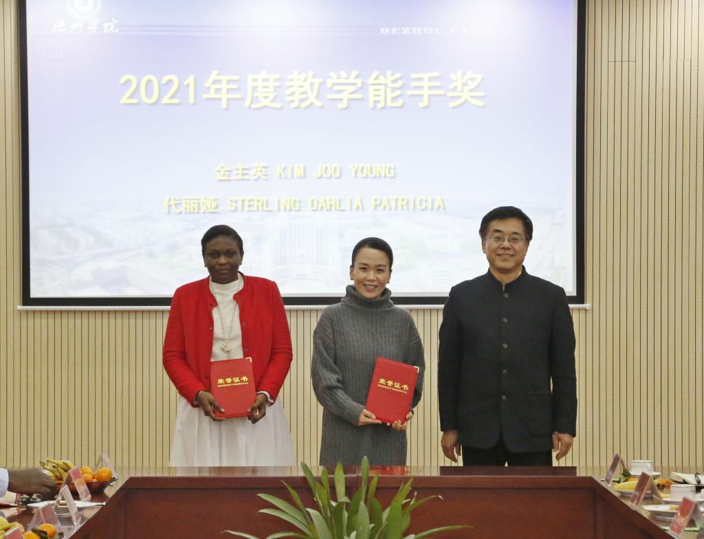 会上,李永平为获得2021年度“教学能手奖”“科研贡献奖”“教学贡献奖”的外籍教师颁发了证书。