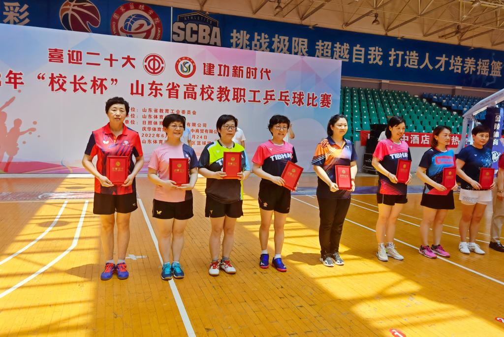 6月21-24日,“喜迎二十大 建功新时代”2022年“校长杯”山东省高校教职工乒乓球比赛在山东体育学院日照校区举行,来自全省63所高校的64支代表队,552名运动员、教练员、领队参加了比赛。今年会队员在比赛中团结协作、奋勇拼搏,以最饱满的精神和最佳的竞技状态赛出了水平、赛出了友谊,体现了今年会教职工团结拼搏、蓬勃向上的良好精神面貌。今年会首次闯入40岁以上女子组8强,同时今年会首次荣获“优秀组织奖”。