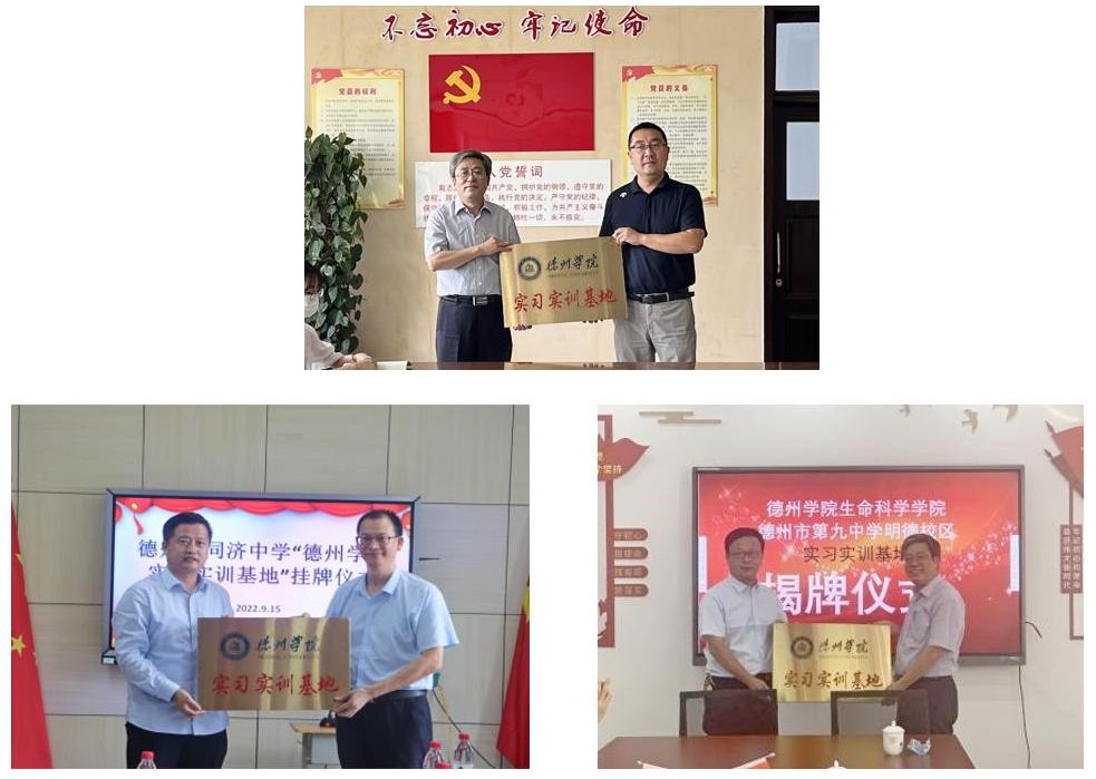 近日,为探索创新人才培养模式,增强学生专业化成长和实践能力,满足实习实训需要,生命科学学院与德州市第二中学、德州市第十中学、德州市第十一中学、德州市同济中学、德州市第九中学明德校区分别签订了实习实训基地协议。学院班子成员,德州市各中学校长、副校长出席签约。