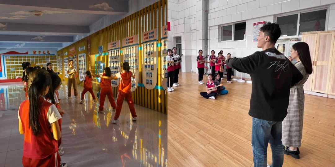 本次美育浸润行动由音乐学院实践中心主任徐琦(竹笛)老师带队,根据每位老师专业的不同进行搭配,分成两个小组同时进行,负责成德小学的教师有赵鹏(声乐)、韩新虹(音乐教育)、胡子钰(钢琴)、刘振宏(舞蹈);负责金书小学的教师有孙晓丹(舞蹈)、贾雪莹(声乐);张利鑫(钢琴)、卢钦政(二胡)。