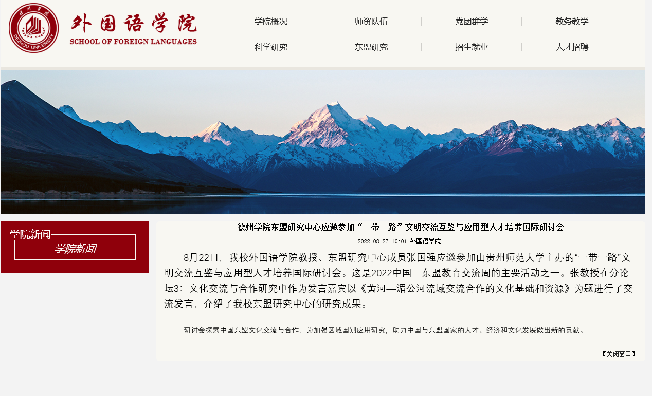 8月22日,中心研究员参加“一带一路”文明交流互鉴与应用型人才培养国际研讨会,以“黄河一湄公河流域交流合作的文化基础和资源”为题进行了交流发言。