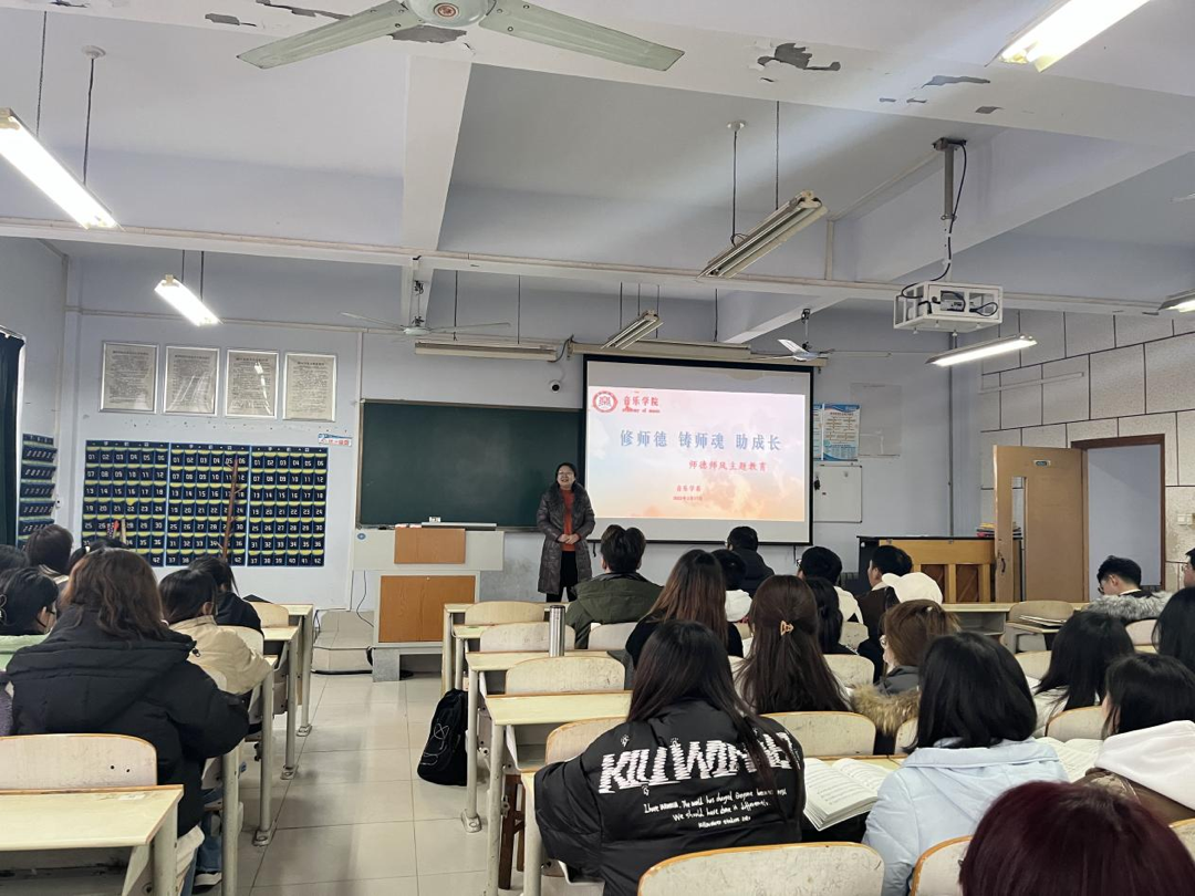 十年树木,百年树人,师德师风是落实立德树人根本任务的关键,作为未来的教师,肩负着推进建设教育强国的重任,要带头践行社会主义核心价值观,不断将立德树人、教书育人的责任感与使命感内化于心、外化于行。音乐学院将始终秉承这一教育理念,通过开展德育讲坛、主题观影活动、演讲比赛、主题音乐会等一系列活动,进一步激发学生的学习与动力,谱写音乐教育的新篇章。