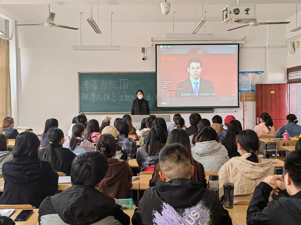 马克思主义学院学生张雨涵表示,认真观看了“青春为祖国 挺膺共担当”主题思政大课后,我感受到了当代青年人的奋斗力量,少年强则国强,张桂梅将青春奉献给大山的教育;黄文秀将青春奉献给家乡的建设;他们不负国家,不负人民,更不负自己的青春。新时代青年,生逢其时,重任在身,于人生定向之时,当立鸿鹄之志,让青春为祖国,为民族,为人民,为人类的贡献中焕发出更加绚丽的光彩。