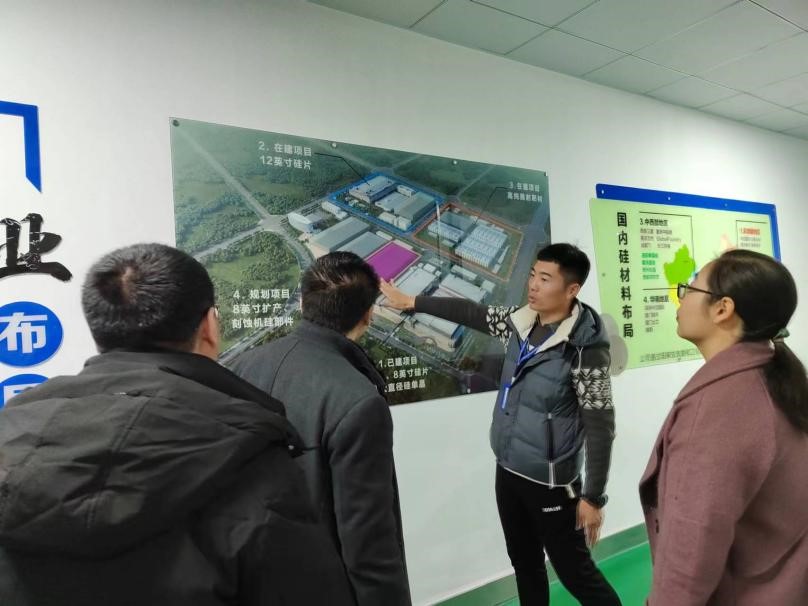 在参观单晶硅生产车间过程中,山东有研半导体材料有限公司工程师张廷龙详细介绍了公司的历史沿革、单晶硅的生产工艺以及国内硅材料的布局等情况。此次走访过程中双方就校企合作事宜还进行了深入座谈。山东有研半导体材料有限公司的总工程师肖清华介绍了公司的发展现状、主要产品以及目前的技术需求。物电学院主要负责人介绍了院系近年的校企合作情况,并探讨了与有研开展校企合作的可行性与结合点。双方均期待后续能共同开展实质性的合作,实现双方共赢。