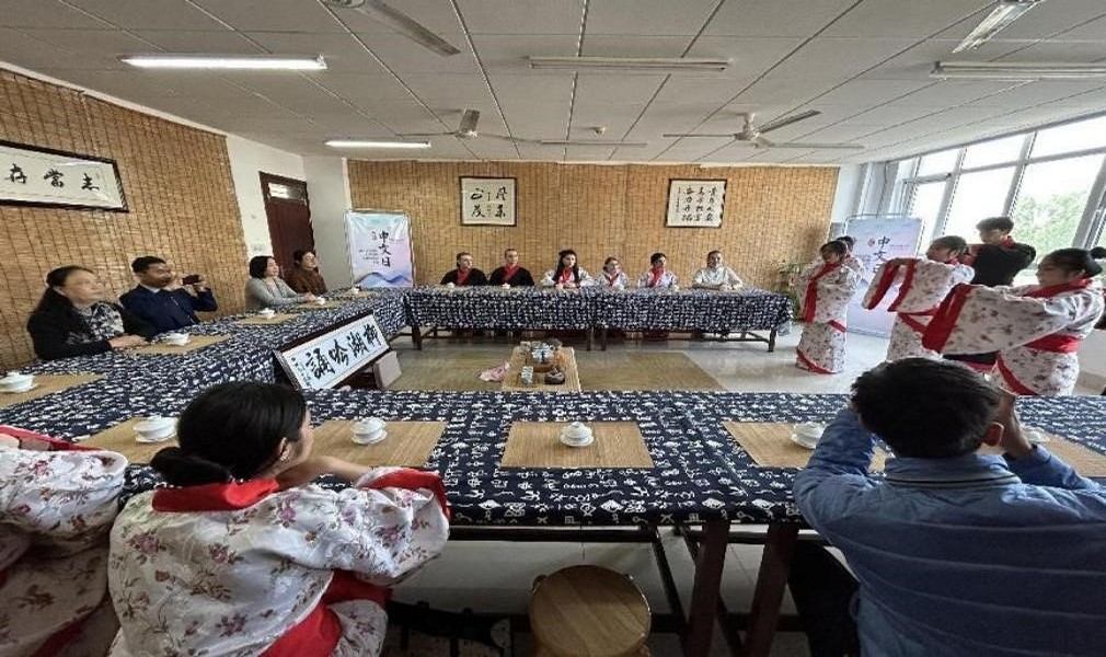 25日,中华诗词诵读会在博文楼柳湖吟诵工作室进行,外籍师生首先观赏了文学与传播学院同学们的吟诵表演,聆听了“柳湖吟诵”协会同学们的中国茶文化讲解,然后在老师和同学们的指导下一起吟诵了《诗经》中《木瓜》、五言乐府诗《游子吟》等作品。悠扬的音乐,一杯茶,一首诗,在这种诗情画意的氛围中,留学生们深刻感受到了中华诗词的意境美和中国传统文化的独特魅力。