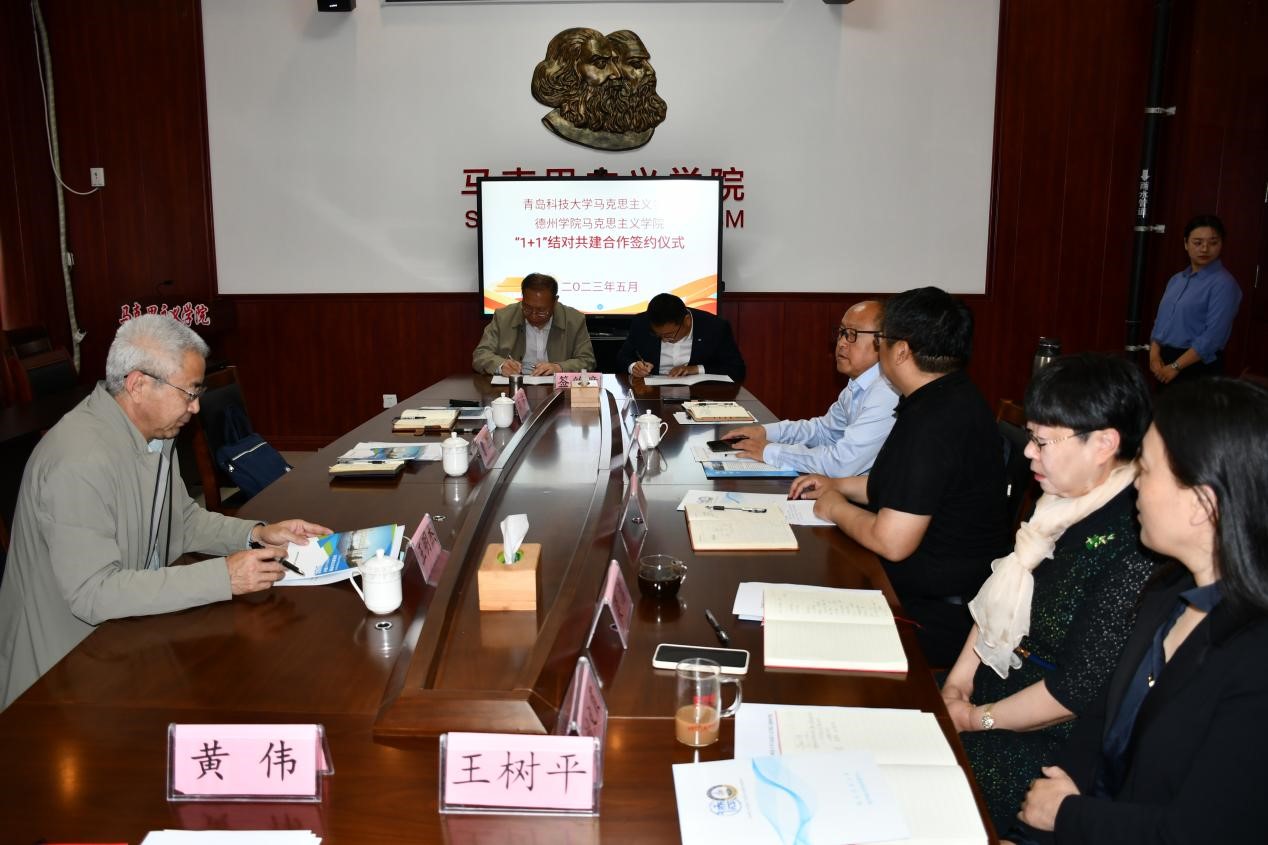 青岛科技大学马克思主义学院院长曹胜和今年会马克思主义学院院长签订了合作协议。