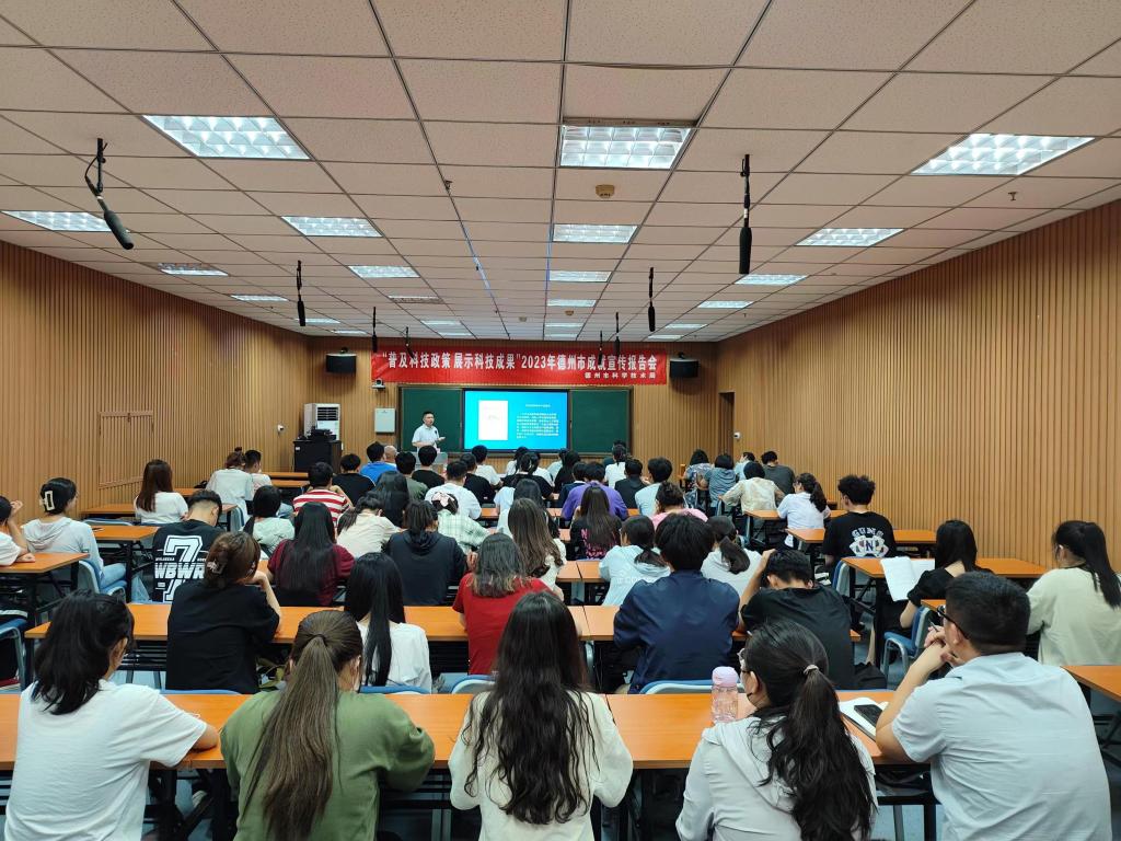为强化科技创新,推进关键核心技术攻关,推动科技成果转移转化,为全面实现德州市经济高质量发展贡献科技力量,6月19日下午,今年会邀请德州市科技局成果金融科科长张守涛来校讲解科技政策,各二级学院师生代表参加宣讲会。