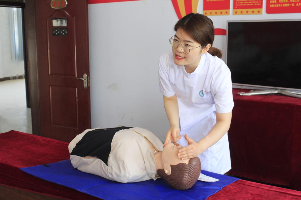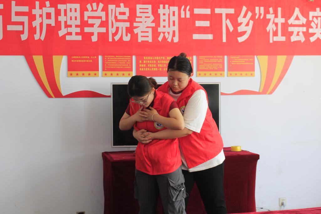 科普培训主要包括老年疾病预防、用药注意事项、心肺复苏术培训、海姆利克急救法普及等。护理专业教师李娜为村民讲解老年疾病预防、用药注意事项等方面的知识,帮助社区村民科学合理用药,树立科学饮食观念、健康生活方式,预防老年疾病;护理专业教师张鑫现场实操为村民讲解心肺复苏术,红十字应急救护志愿者现场演练海姆立克法,提高居民危机意识和应对突发事件的自救、互救能力。