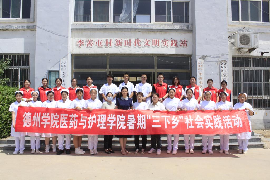 为深入学习宣传贯彻党的二十大精神,学习贯彻习近平总书记关于青年工作的重要思想,积极将“小我融入大我”,引领学生立志做有理想、敢担当、能吃苦、肯奋斗的新时代好青年。2023年7月7日,医药与护理学院结合学院专业实际,由师生党员、南丁格尔志愿者、红十字应急救护志愿者、学生干部等三十余人,组建南丁格尔志愿服务队和“馨星助梦”志愿服务队赴德州市武城县武城镇开展暑期“三下乡”社会实践活动。