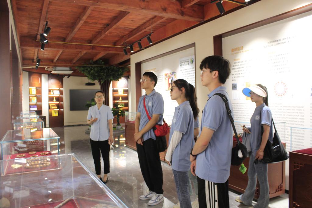 在讲解员的带领下,团队成员先后参观了古桑博物馆、桑产品加工车间和古桑树林,深入了解古桑树群的价值,切实体会夏津人民世代传承的农业文化精神。通过此次考察,团队成员被古桑树文化的浓厚历史所深深震撼,团队成员希望通过自己的专业特长,能够在网络传播桑树文化方面贡献自己的力量,让桑树文化在新时代拥抱新的机遇。