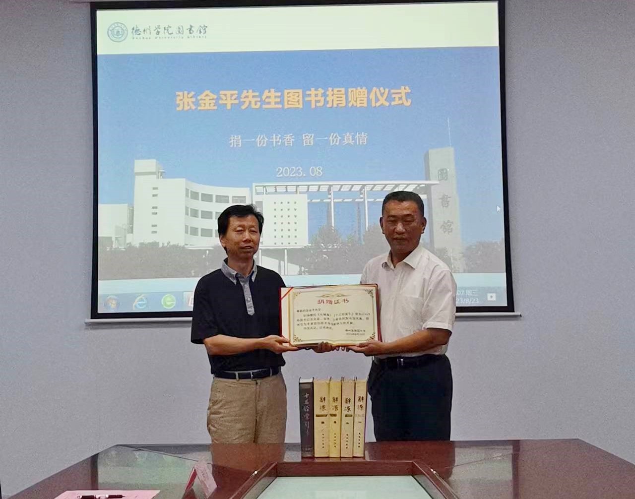 张金平教授捐赠的图书进一步丰富了图书馆特色资源,对德州地域文化研究必将起到重要作用。