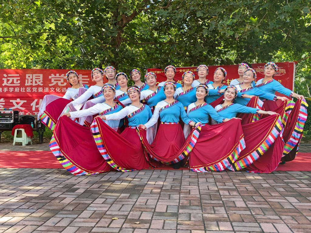 退休教师发挥专业优势,踊跃参与、辛勤排练,充分展现了新时代老年人乐观饱满、积极向上的时代风采。寓意坚定信仰和忠诚的《卓玛泉》舞蹈表演,中华优秀传统文化瑰宝之一的太极功法表演,大气磅礴的配乐朗诵《辉煌的中国》,苍劲有力的书法表演现场送祝福等,都受到居民的极大欢迎,为社区营造了文化氛围,提升了居民获得感。