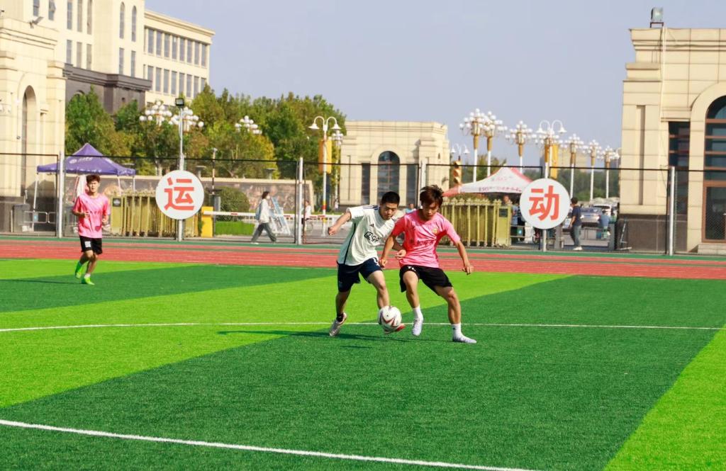 10月10日,举办“庆国庆,燃运动激情”足球友谊赛。化学化工学院足球队与兄弟学院奔跑在田径场,以积极向上的青年姿态向祖国献礼。