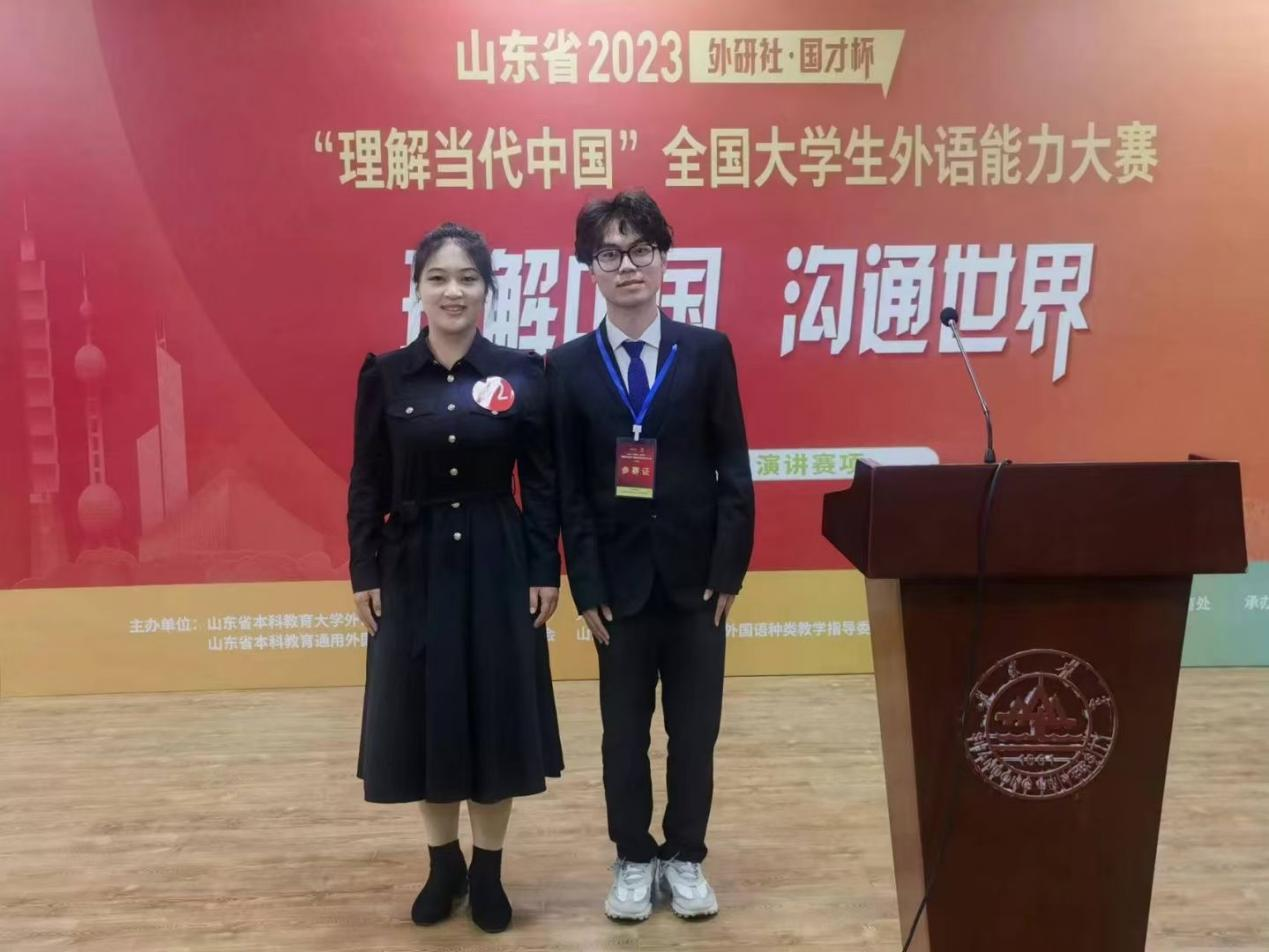 近日,2023“外研社·国才杯”“理解当代中国”全国大学生外语能力大赛——英语演讲、写作、阅读、口译、笔译以及多语种俄语6项比赛的山东赛区复赛落下帷幕。来自全省76所高校的753名学生参加了此次大赛。经过激烈角逐,今年会学子杨柳获英语演讲大赛山东赛区二等奖、张霖轩获英语口译大赛山东赛区三等奖、杨越涵获英语笔译大赛山东赛区三等奖、吴爱宇获英语阅读大赛山东赛区三等奖,陈昌木、李菁涵、郑利彩、任祥瑞、张一诺以及乔学广和李恒洋分获英语演讲、英语写作、英语阅读、英语笔译、俄语大赛山东省复赛优胜奖。