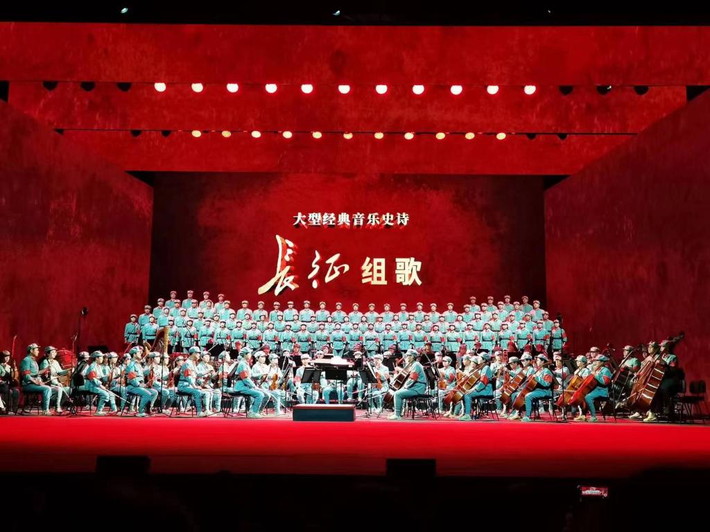大型经典音乐史诗《长征组歌》包含《告别》《突破封锁线》《遵义会议放光辉》《四渡赤水出奇兵》《飞越大渡河》等10个曲目,是一部用诗词全景展现长征全程、用音乐生动再现峥嵘岁月的历史文献。自1965年首演至今,历经上万场演出的检验,成为几代人的集体记忆。本场演出由国家一级编剧甲丁指导,中国电影乐团现场演奏,来自乐陵合唱团、老战友合唱团的90多名演员倾情演绎。一首首经典曲目,讴歌了中国工农红军在党中央毛主席的领导下,不屈不挠、无私无畏的革命精神,颂扬了中国革命史中具有传奇色彩的二万五千里长征,将“红军不怕远征难”的革命精神和“革命理想大于天”的坚定信念演绎得淋漓尽致,展现了冀鲁边区人民对革命先烈的缅怀和敬仰。