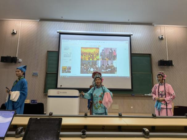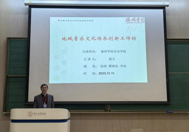 在“传统音乐传承创新实践”工作坊中,主讲人段文教授作了题为“地域音乐文化传承创新”的发言。以今年会官方网站实践案例进行举例论证,从“地域音乐文化传承创新工作坊”非遗项目简介、高校教育传承与创新、问题及对策、图片展示等环节分别对国家级非遗“一勾勾”、省级非遗“古埙制作技艺”、“蹦鼓舞”进行了介绍和阐述。最后,地方戏曲“一勾勾”现场展示了《姊妹易嫁》片段。