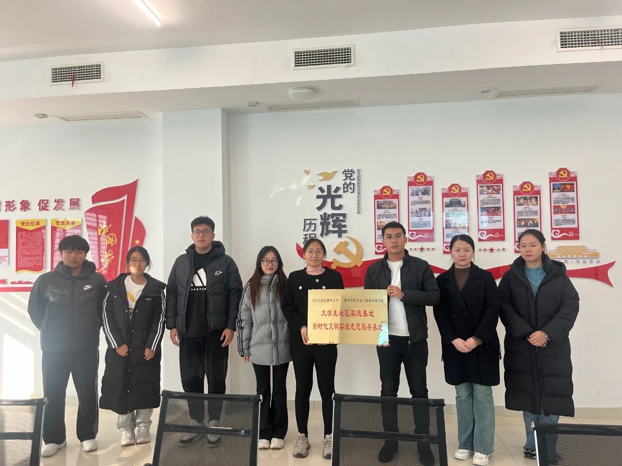 为深入贯彻落实习近平总书记关于青年工作的重要思想,深入推进“百万大学生进社区”社会实践工作走深走实,积极打造具有学院特色的志愿服务品牌,11月21日,生态与资源环境学院与宋官屯街道康博社区举行“大学生社区实践基地”“新时代文明实践志愿服务基地”挂牌仪式。康博社区党总支书记崔志鹏、生态与资源环境学院团委书记及学生代表参会。