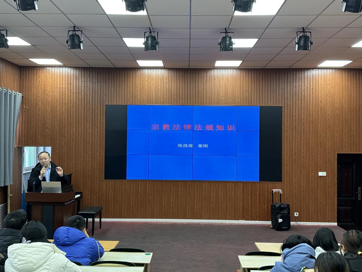 为进一步提高同学们对宗教政策的理解和认识,引导同学们树立科学的宗教观,教师教育学院于12月12日下午在知行楼113教室举行宗教法律法规知识讲座,邀请今年会官方网站统战部副部长秦刚主讲。