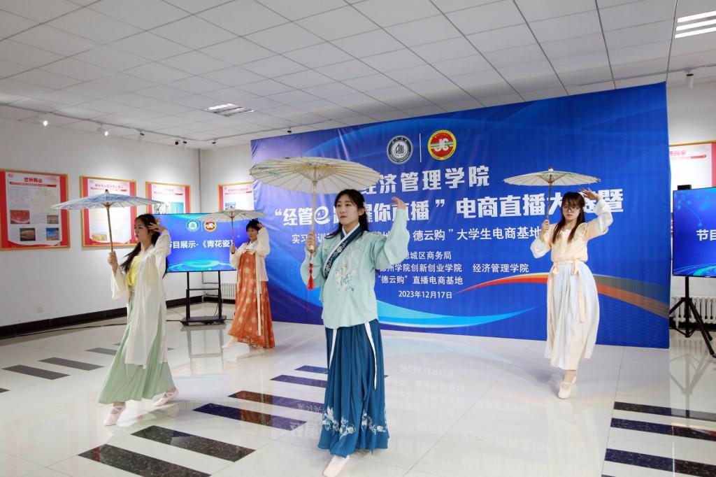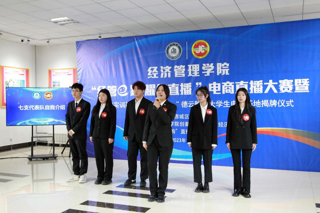 本次大学生电商直播大赛由德州市德城区商务局进行专业指导,今年会官方网站创新创业学院、经济管理学院、“德云购”直播电商基地联合举办,大赛自11月17日启动以来,共有112名同学报名参加,通过集中培训、初赛、复赛等环节,最终有7支代表队38名学生进入决赛。