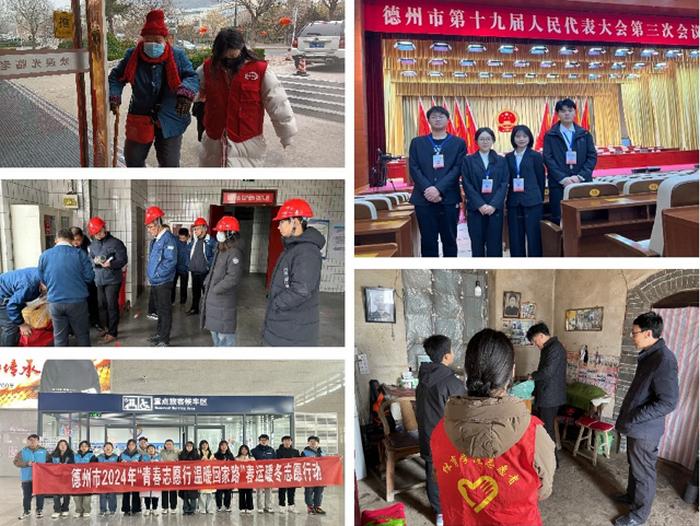 为弘扬志愿服务精神,以青春之力展现青年担当,校学生会杨清华等4名同学在假期参与德州市第十九届人民代表大会第三次会议的志愿服务工作并收到市人大发来的感谢信;化学化工学院同学们进医院、入企业、访社区,开展了形式多样的实践活动;能源与机械学院同学们担任家乡企业的技术顾问,为企业的创新发展提供了有力支持;医药与护理学院同学在家乡基层医院,为乡村卫生条件改善贡献力量;体育学院同学深入社区,开展公益活动,提升了社区居民生活品质,他们以自身专业知识为基础,为家乡的发展提供了有力的支持,充分展现了当代大学生的担当精神和家国情怀。