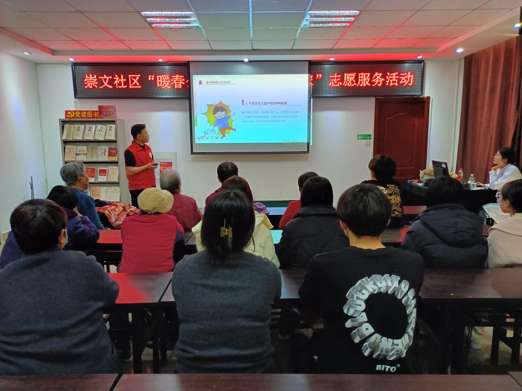 为提高居民用火、用电安全意识,增强抵御火灾事故的能力,同时进一步增强老年人的健康意识,提升社区居民的健康水平。医药与护理学院学生党员、南丁格尔志愿者于3月19日前往崇文社区开展学雷锋月“暖春公益行,敬老情更浓”志愿服务活动。