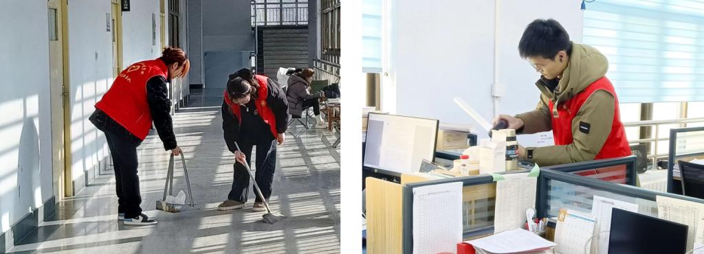 活动中,志愿者们手拿扫帚、垃圾袋,以教学楼为中心,将周围环境的垃圾进行了全面清扫,随后打扫了教学楼的教室和老师办公室,擦拭桌椅黑板,为师生提供了干净明朗的学习工作环境。志愿者们以奉献服务为初心,分工明确,相互配合,积极投入活动。