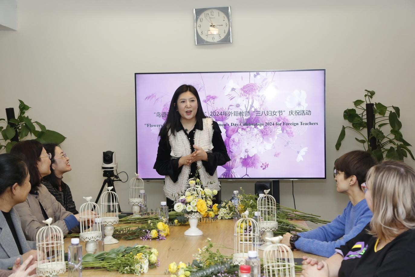 为庆祝三八国际劳动妇女节的到来,丰富外籍教师文化生活,使广大外籍教师以健康向上、充满活力的精神面貌投身到工作、生活中,3月7日下午国际交流合作处举办“鸟语花香,绽放暖春”2024年外籍教师“三八妇女节”庆祝活动。来自俄罗斯科学院戈尔巴托夫食品研究中心的教授、别尔哥罗德国家研究型大学的老师们以及国际交流合作处人员参加了此次活动。