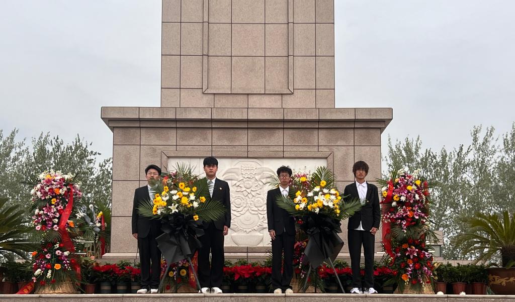 在无名烈士墓前,全体学生肃立默哀,向革命先烈表达最深切的哀思。随后,大家依次走上前,将手中的鲜花放在纪念碑前,以示对先烈深切的缅怀和崇高敬意。
