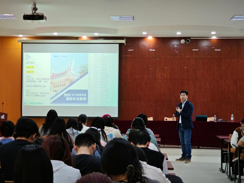 为促进毕业生高质量就业、拓宽就业渠道,4月24日下午,文学与新闻传播学院、外国语学院与教师教育学院在博文楼328报告厅以及通过腾讯线上会议,联合举办新东方比邻中文专场招聘宣讲会,三院2024届、2025届相关专业毕业生百余人参加了会议。