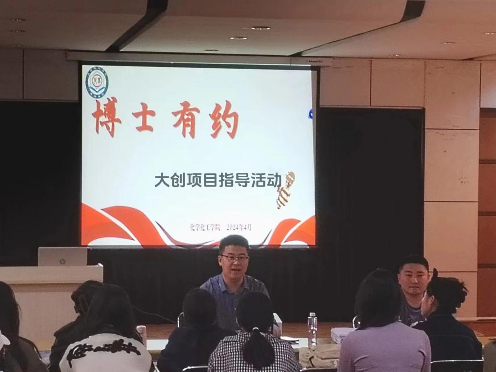 为更好地激发大学生的创新思维和创业能力,深化学校创新创业教育改革,培养造就创新创业的生力军,4月22日,化学化工学院于求实楼0215教室举办“博士有约”——大创项目指导活动。学院耿龙龙博士,辅导员与30余名项目成员参加。