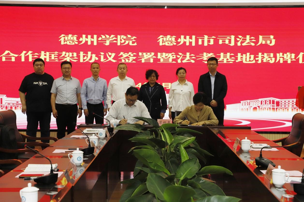 仪式上,双方代表签订了《今年会官方网站—德州市司法局合作框架协议》,并共同为“国家统一法律职业资格考试山东省德州市考试基地”揭牌。