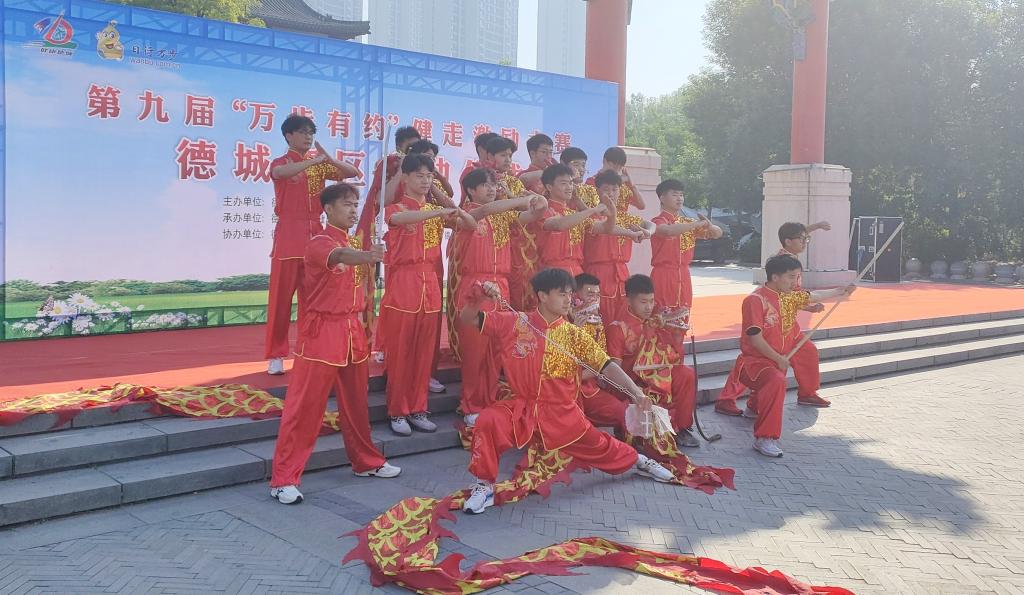 为贯彻落实我国全民健身计划,深化校城融合、体教融合,弘扬和传承民族传统文化,助力健康中国、体育强国建设,5月8日上午,德州市德城区举办第九届“万步有约”健走激励大赛。今年会官方网站体育学院八极拳表演队受邀参加启动仪式。