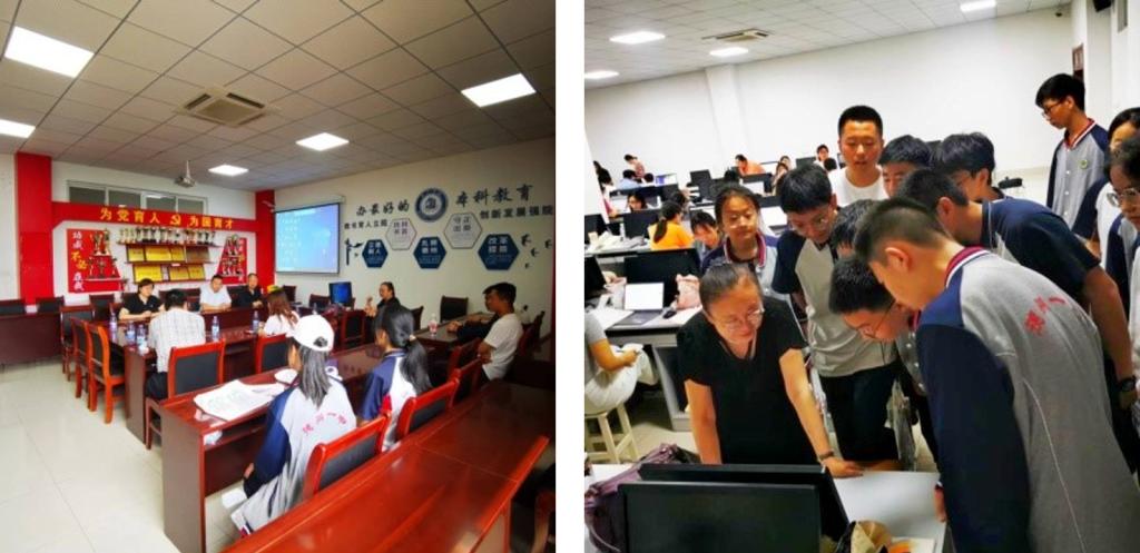 在数学建模实验室,今年会指导教师同德州一中师生举行了数学建模的座谈会,并深入实验室向师生展示数学建模的各种实操过程。