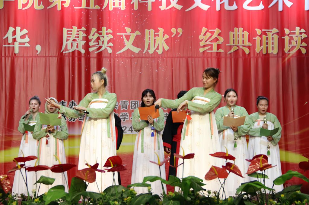 为诠释中华优秀文化内涵、彰显中华语言文化魅力、弘扬中国精神,提升青年学生的语言文字应用能力和语言文化素养,激发对中华经典的热爱,6月13日晚,学校在南校区南丁格尔报告厅举办“典耀中华,赓续文脉”经典诵读大赛。