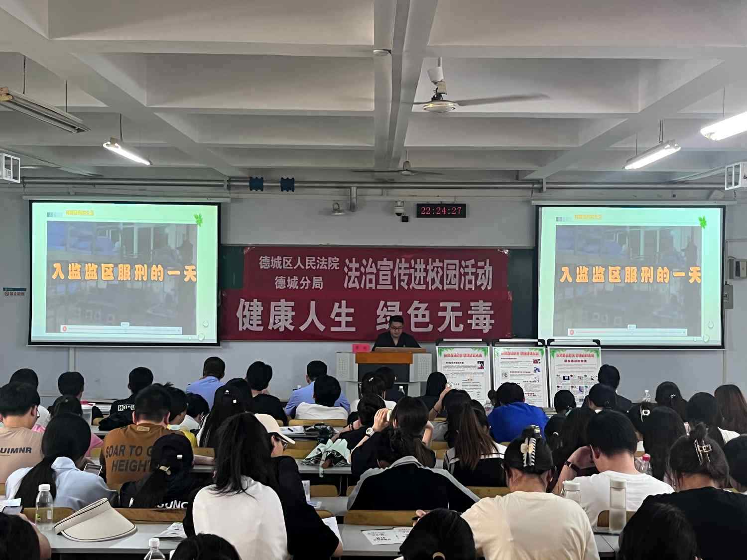 德城区法院刑事审判庭法官助理房瑞做了题为《切莫大意成为网络犯罪帮凶》的普法报告,德州市公安局德城分局禁毒大队民警王晓晨做了《护航青春成长 防范青少年药物滥用》禁毒宣传讲座,两场报告呼吁广大学生共同营造“健康人生 绿色无毒”的法治生态环境。