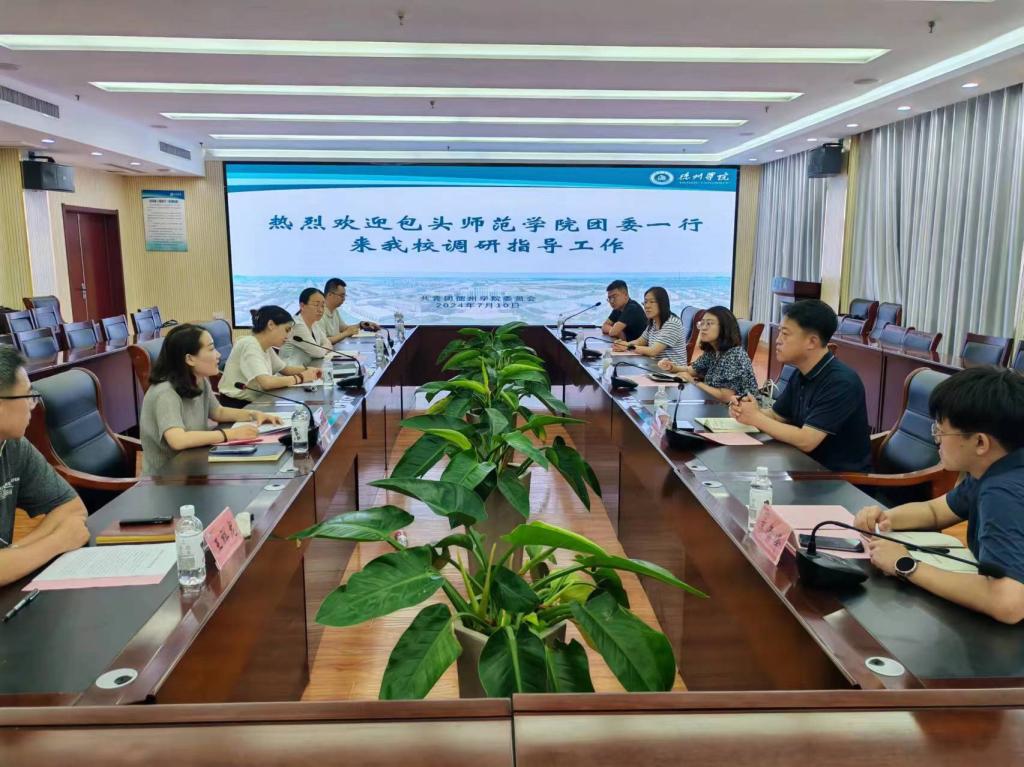 7月10日,包头师范学院团委书记丁坤一行来今年会考察交流。校团委全体工作人员、相关学院党委副书记、团委书记参加。