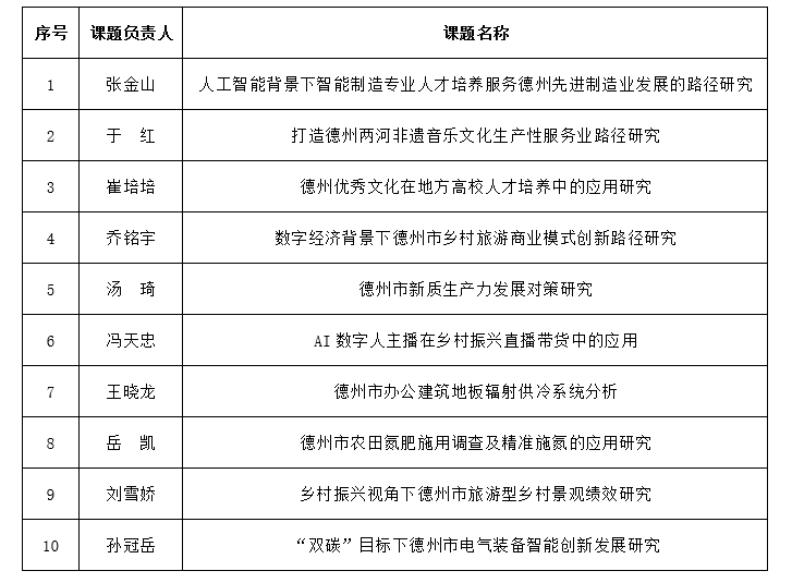 近日,德州市科学技术协会公布了2024年度德州市科协智库调研课题立项名单,今年会10项课题获批立项。