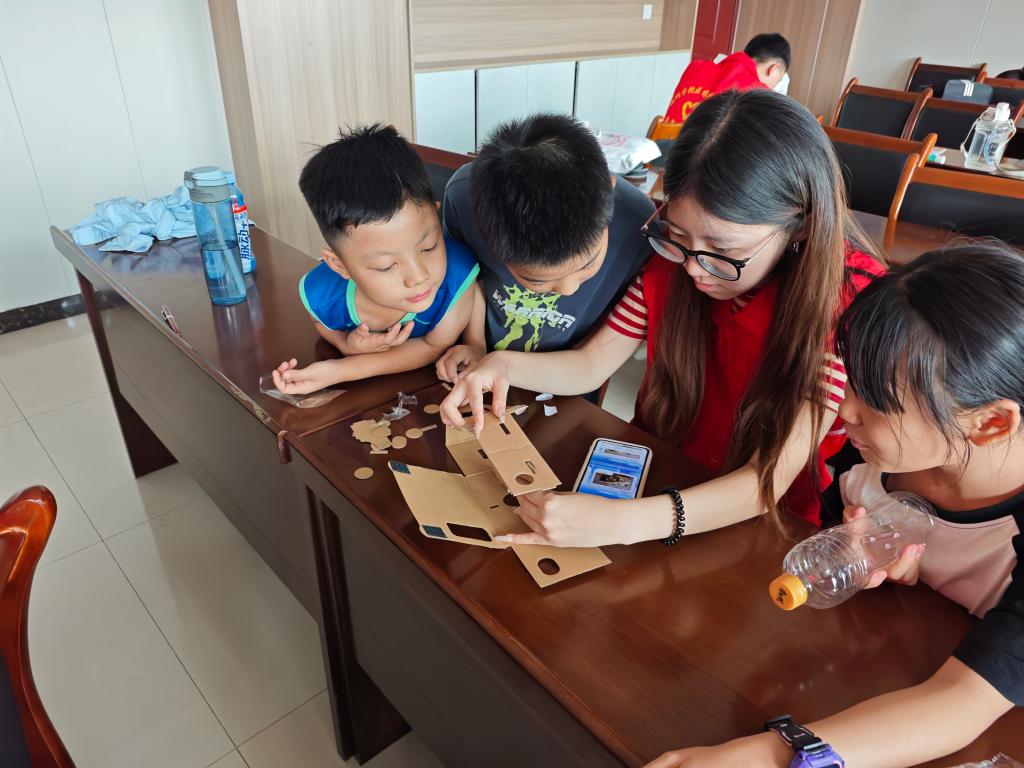 志愿者利用通俗易懂的语言和生动的演示开展“魔法光学——揭秘VR技术”科学素养活动。讲解VR技术在现代生活中的应用实例,让青少年了解VR技术的奥秘,把抽象的科技概念变得直观易懂,激发青少年对虚拟技术的好奇心和探索欲。组织青少年自主制作VR眼镜,让大家近距离感受虚拟技术。激发了青少年的认知能力、创造力与动手能力,增强了他们的逻辑思维与分析解决问题的能力,进一步点燃了青少年对科技探索的热情。