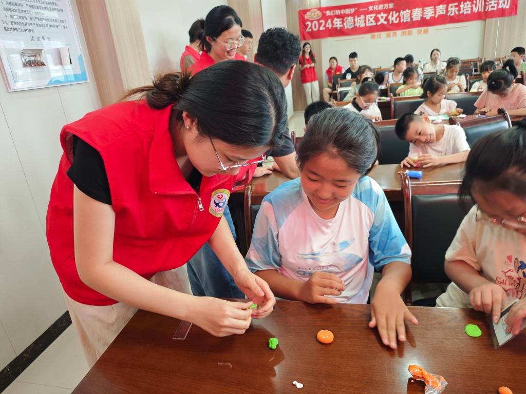 志愿者通过生动的讲解与丰富的图片展示,引领青少年穿越中华美食的悠久历史长河。八大菜系的发展历程更是让青少年了解了中华传统美食的丰富底蕴。青少年用太空泥揉、挫、捏、切,捏出了形态各异、创意十足的美食作品,通过DIY手工活动培育了青少年的审美能力和自主学习能力。