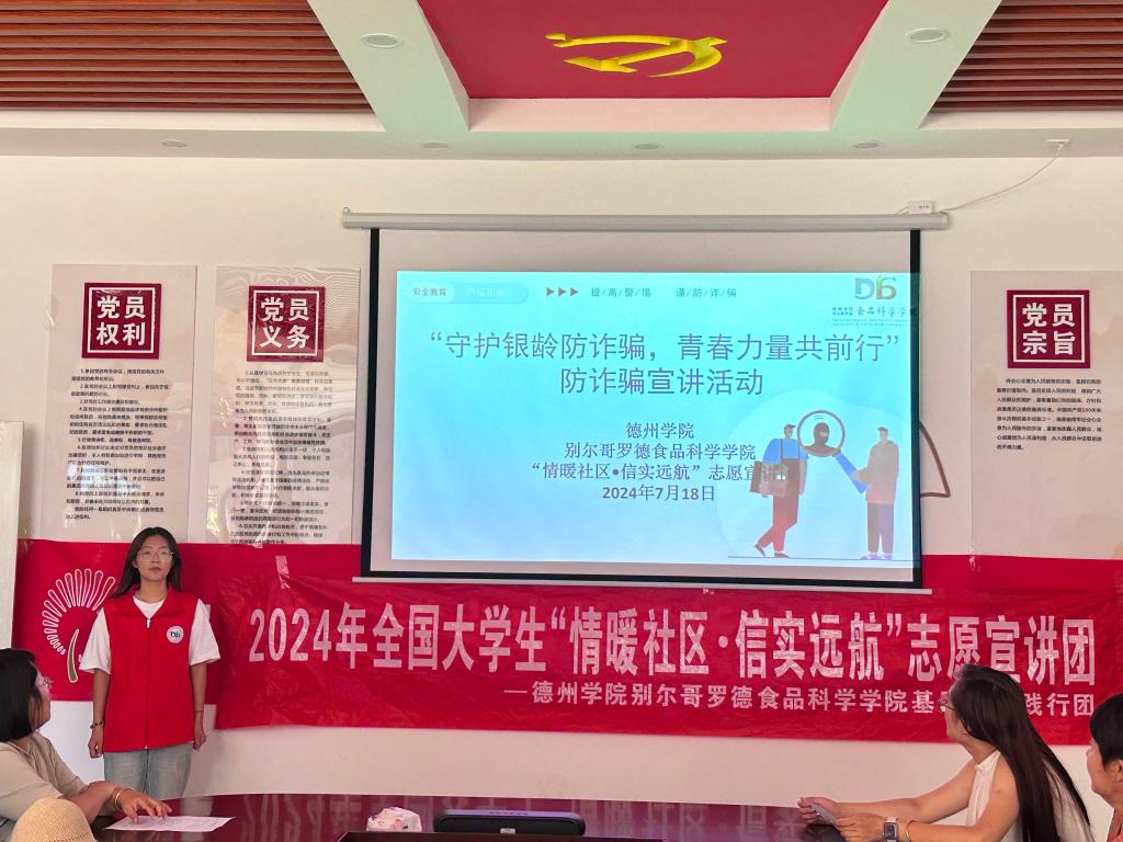 为深入学习贯彻党的二十届三中全会精神,引导中外合作办学青年学子积极投身社会实践,增强社会责任感。近日,别尔哥罗德食品科学学院“情暖社区•信实远航”志愿宣讲团赴德城区新湖街道顺城社区、天衢新区宋官屯街道大申社区和德百物流批发城开展“防溺水”“防诈骗”“防结核”系列社会实践活动。