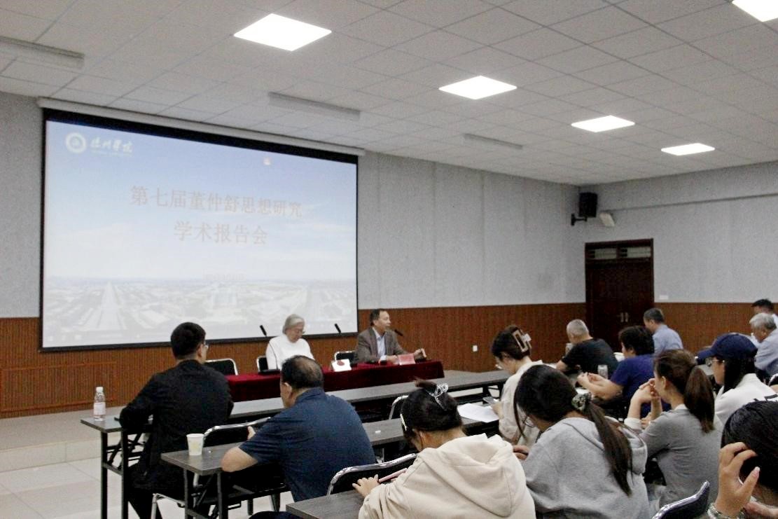 9月21日下午,第七届董仲舒思想研究学术报告会在学校举办。报告会邀请复旦大学谢遐龄教授和上海交通大学余治平教授作学术报告,校党委委员、副校长刘印房教授主持报告会。
