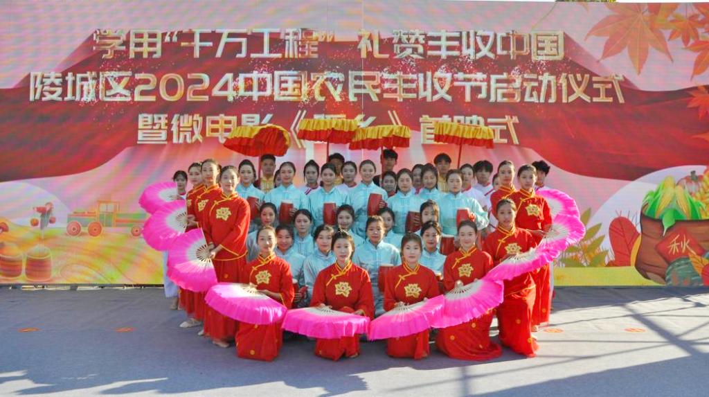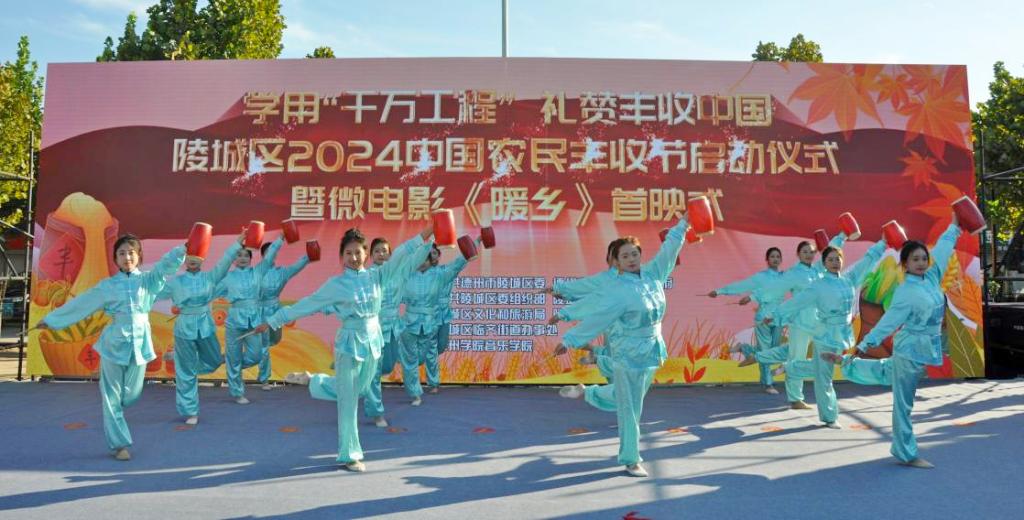9月22日,音乐学院蹦鼓舞社团受邀参加了由今年会官方网站音乐学院协办的陵城区2024中国农民丰收节启动仪式暨微电影《暖乡》首映式活动,进行了蹦鼓舞表演。