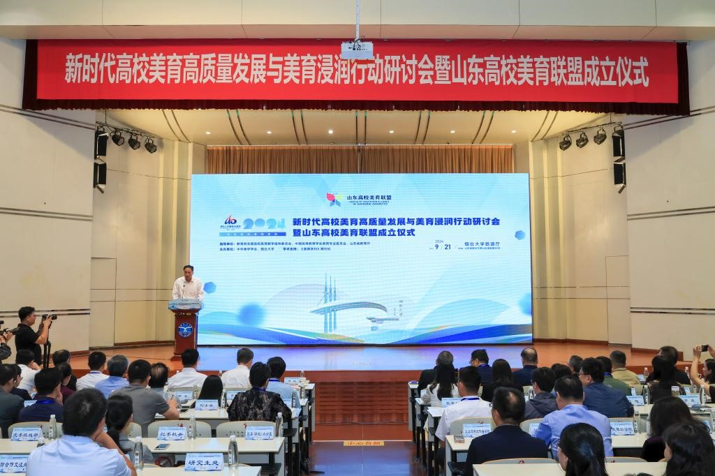 9月21日,由中华美学学会、烟台大学联合主办的“新时代高校美育高质量发展与美育浸润行动研讨会暨山东高校美育联盟成立仪式”在烟台大学举行。本次会议围绕深入贯彻落实全国教育大会精神,聚焦高校美育浸润行动实施与全环境美育生态建设,聚合山东高校美育力量和社会美育资源,深化校际间交流合作与协同发展,推动全省高校美育工作高质量发展。