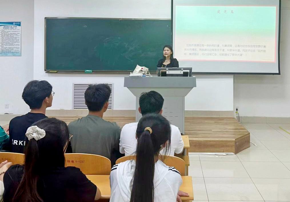 教师领航,实现入党启蒙教育+思政育人课堂。9月6日,物理与电子信息学院邀请马克思主义学院思想政治理论课教师徐珊珊,为2024级新生做“党的光辉历史”主题讲座。引导他们树立正确的世界观、人生观、价值观,坚定社会主义理想信念,成长为传播中国文化、服务国家战略需求的高素质人才。