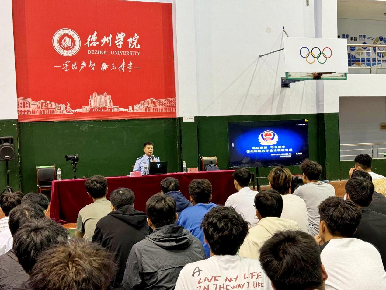 为进一步加强学生的法制观念,提升安全与自我保护意识。9月26日,体育学院特邀德州市公安局德城分局治安大队副大队长、三级警督孔令锐为全体2024级新生带来一场别开生面的法治教育讲座。