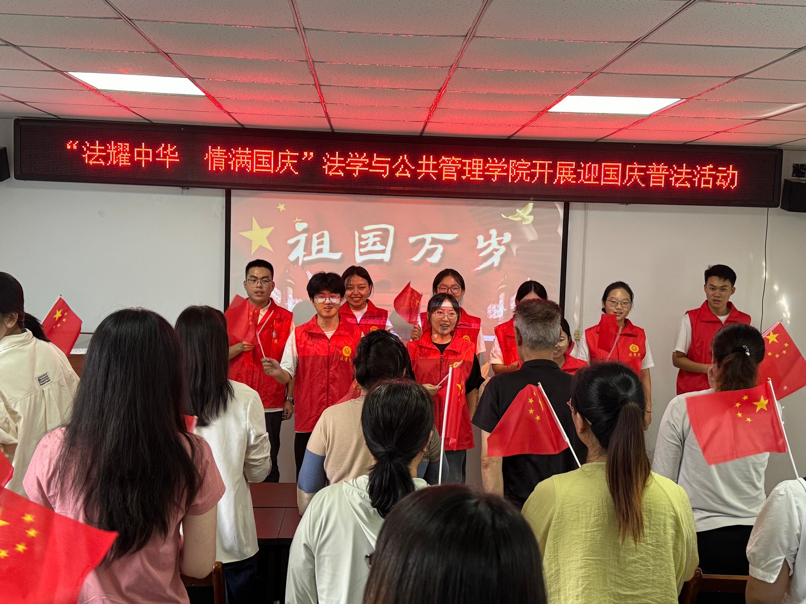 盛世华诞迎国庆,法治同行促和谐。为庆祝中华人民共和国成立75周年,增强社区居民法律意识。9月27日-29日,法学与公共管理学院联合状元府社区、西长社区等地开展“法耀中华,情暖国庆”普法进社区活动。