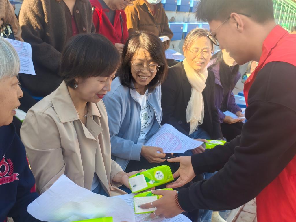法学与公共管理学院联合南龙社区在德州市五环体育场开展“重阳敬老情,法护桑榆晚”志愿服务活动。活动中,法学与公共管理学院青年志愿者以悬挂条幅、法律宣讲、宣传单页发放等形式,为社区老年人宣传《民法典》《中华人民共和国老年人权益保障法》等相关法律知识,针对近年来老年人关注的投资理财、电信诈骗、非法集资等典型问题,志愿者们以案例为依托,引导老年人增强防范意识,学会用法律武器来维护自己的合法权益。