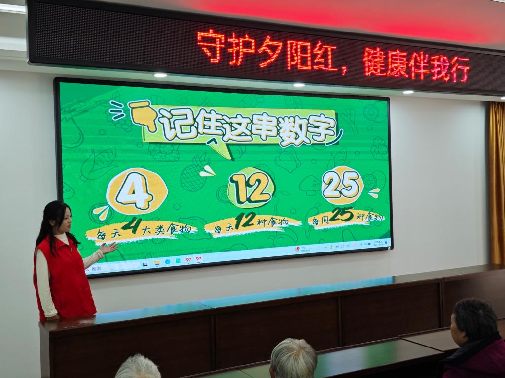 活动在“秋季如何正确养生”和“早餐吃什么”为主题的健康宣讲中拉开序幕,志愿者们用通俗易懂的语言绘声绘色地讲解了健康养生与合理饮食方面的知识,指导老年人如何顺应秋季时辰进行养生及饮食调节,怎样从食疗中进行养生预防,最后又针对老年人易患的慢性病,从饮食调节方面进行了更加针对性地指导帮助。老人们表示,这样的健康知识讲座对老年人相当有意义,大家受益匪浅。宣讲结束后,志愿者们在活动现场为社区老人测量血糖、血压,并根据检测结果给予健康建议,在普及健康知识的同时也传递了关心爱护老年人的良好风尚。